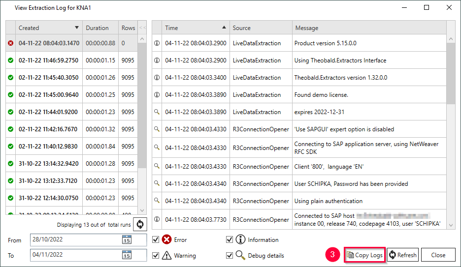 - Activate the trace function, see How to Activate Tracing for Xtract Products.