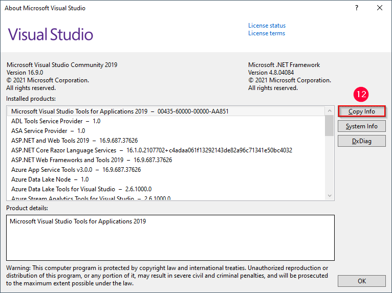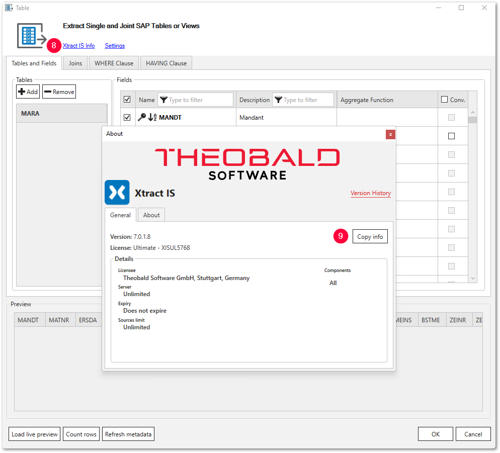 - Click on Xtract IS Info (8) > General > [Copy info] (9).