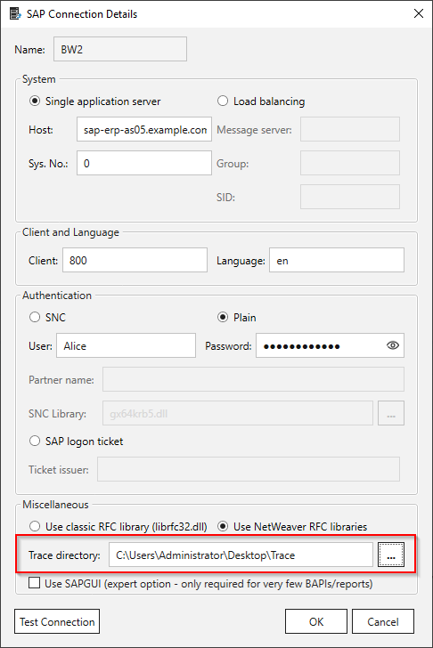 - Delete the entry in the connection’s Trace directory field after the tracing is not needed anymore.