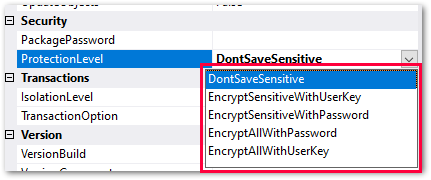 ProtectionLevel property is set to DontSaveSensitive.Solution
