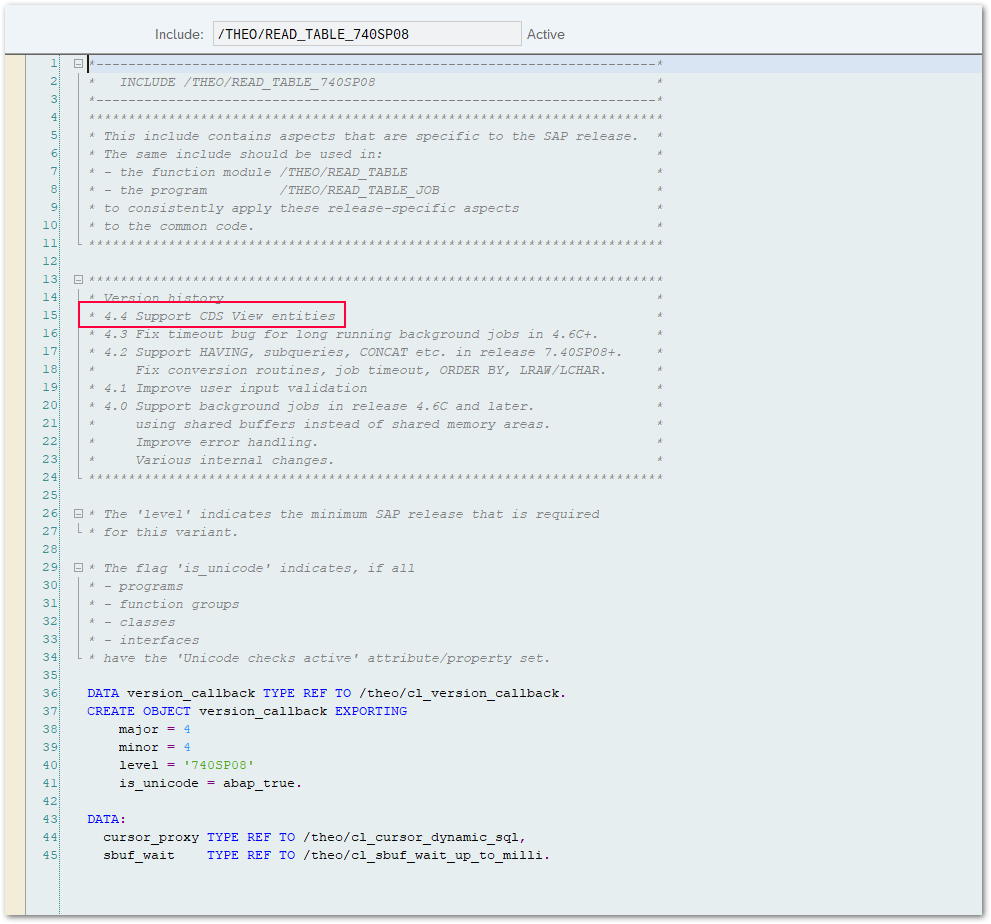 /THEO/READ_TABLE function module not being up-to-date.Solution: